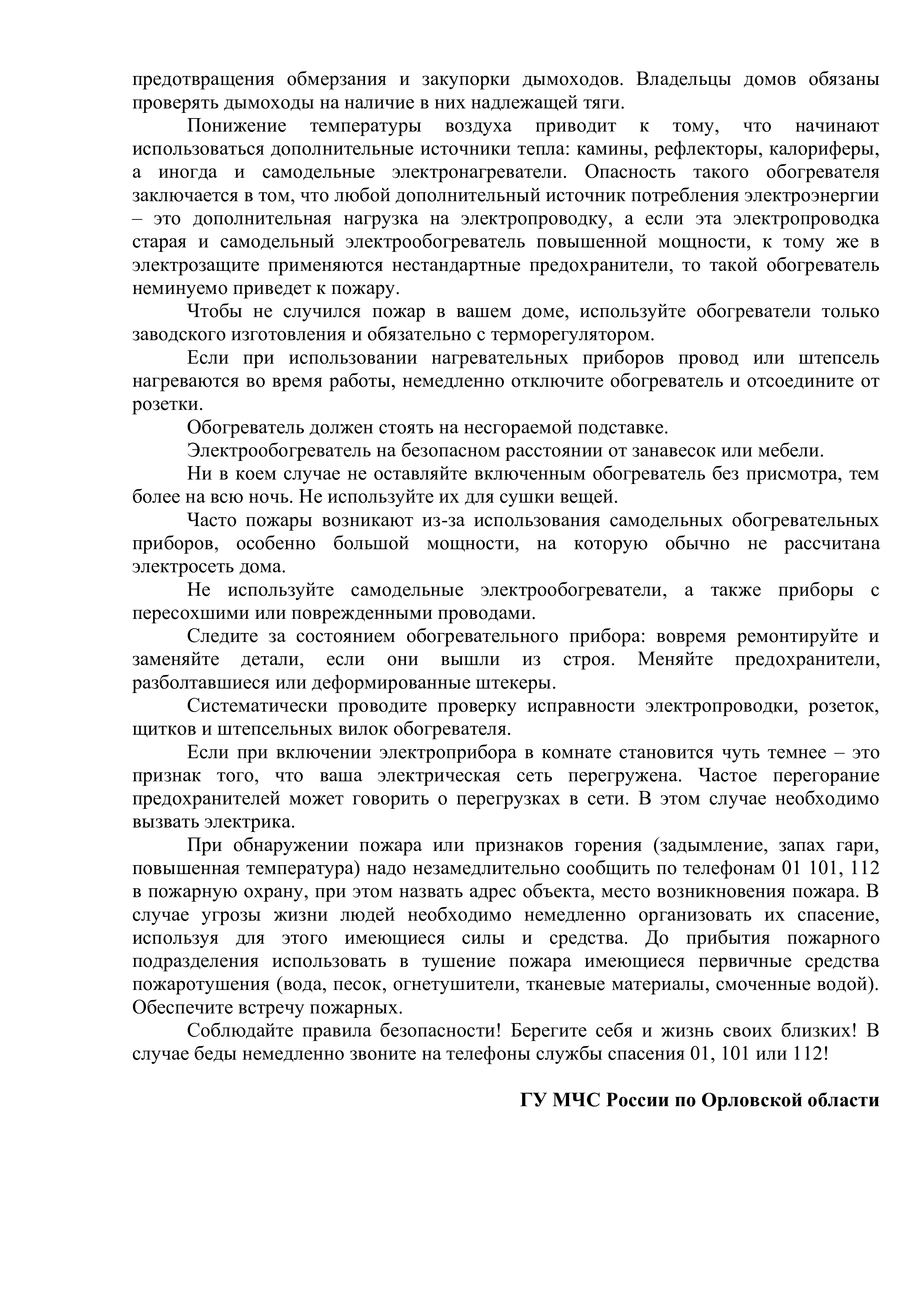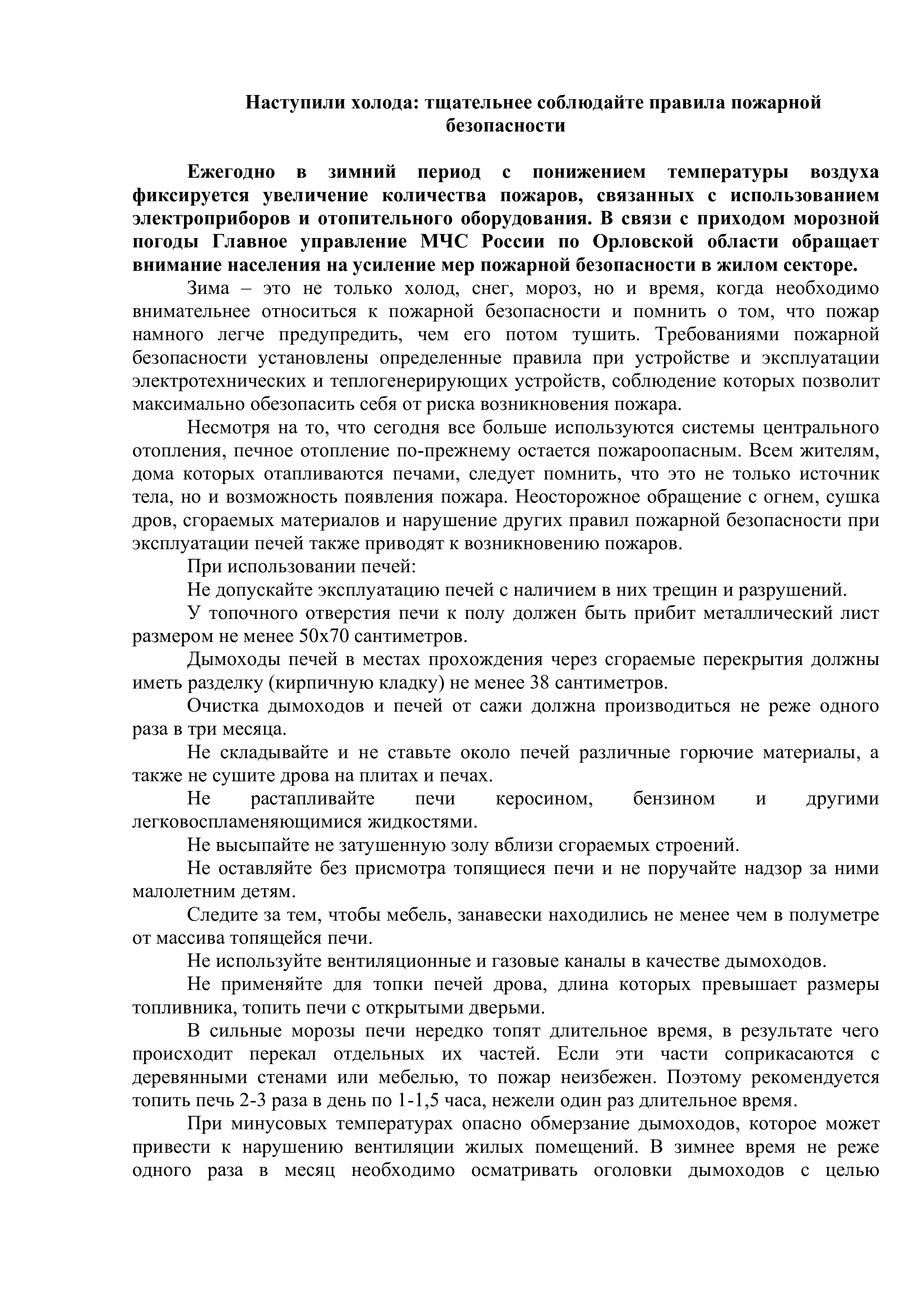 Статья "Пожарная безопасность при понижении температур"
